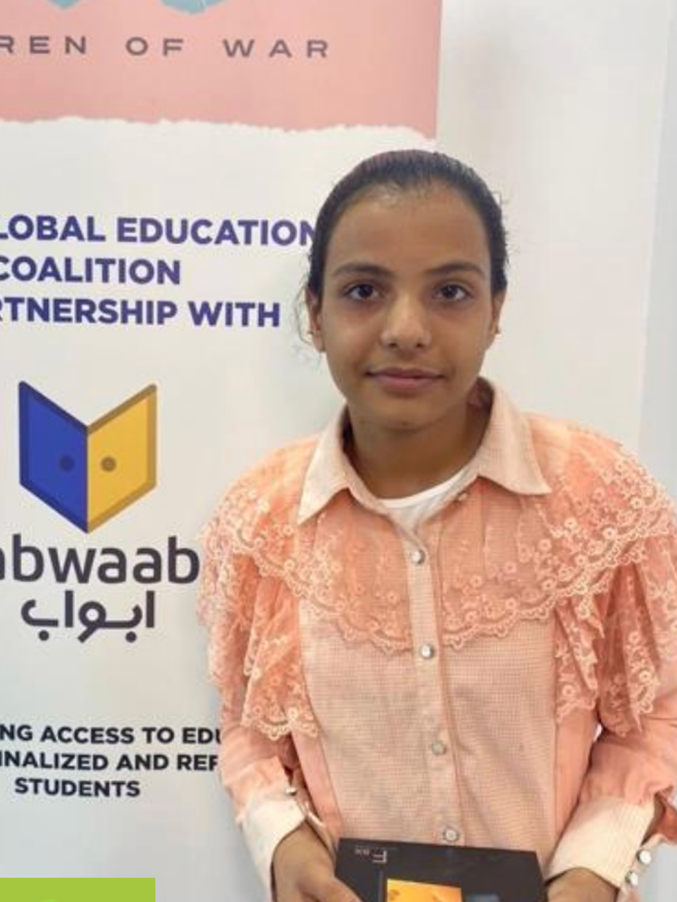 It was a very difficult year because of the circumstances I faced, because I could not attend private lessons or enroll in anearby school, but through the Children of War Foundationand support from Unique Zan Foundation, I started studyingon Abwaab’s platform about ten months ago.